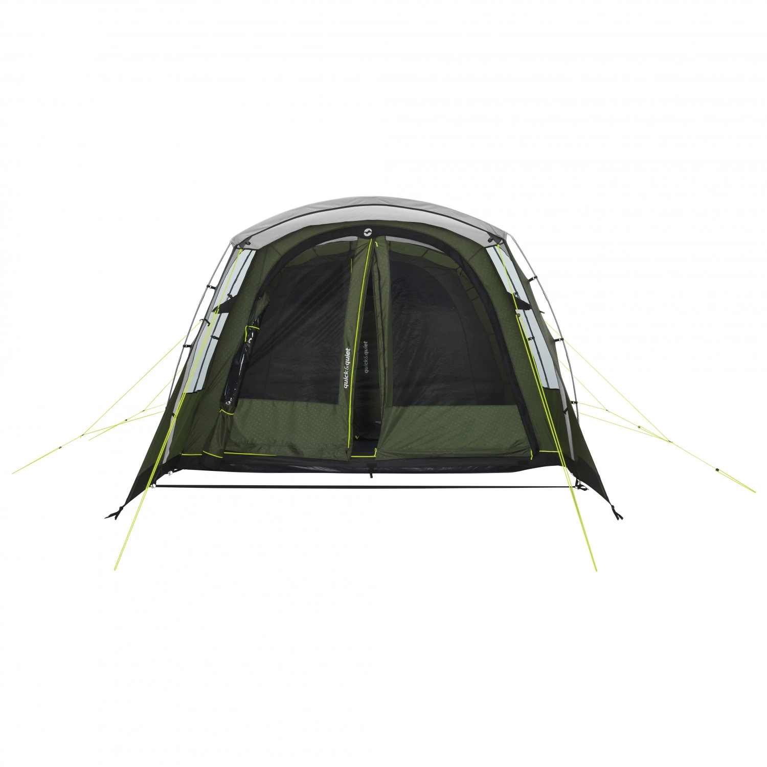 Ideal für ein entspanntes Campingwochenende mit der ganzen Familie: das Ashwood 5 von Outwell! Beim Ashwood 5 handelt es sich um ein geräumiges Dreiraum-Tunnelzelt, das Platz für bis zu fünf Personen bietet und somit hervorragend für Familien geeignet ist. Beim Außenzelt kommt das widerstandsfähige Outtex 4000 Select Zeltmaterial von Outwell zum Einsatz. Das reißfeste Polyestergewebe ist mit getapten Nähten sowie einer wasserabweisenden PU-Beschichtung versehen und sorgt zusammen mit dem eingenähten, wasserdichten Zeltboden für einen zuverlässigen Regenschutz. Das leichte und flexible Duratec Fiberglasgestänge verleiht dem Zelt die nötige Stabilität und bietet in Kombination mit dem Wind Stabilizer System von Outwell auch bei stärkerem Wind eine hohe Standfestigkeit. Die verstellbaren Abspannpunkte erlauben mehr Flexibilität beim Zeltaufbau, während die vormontierten Abspannleinen den Aufbau erleichtern und beschleunigen.