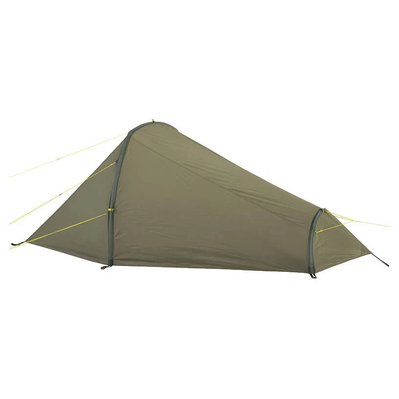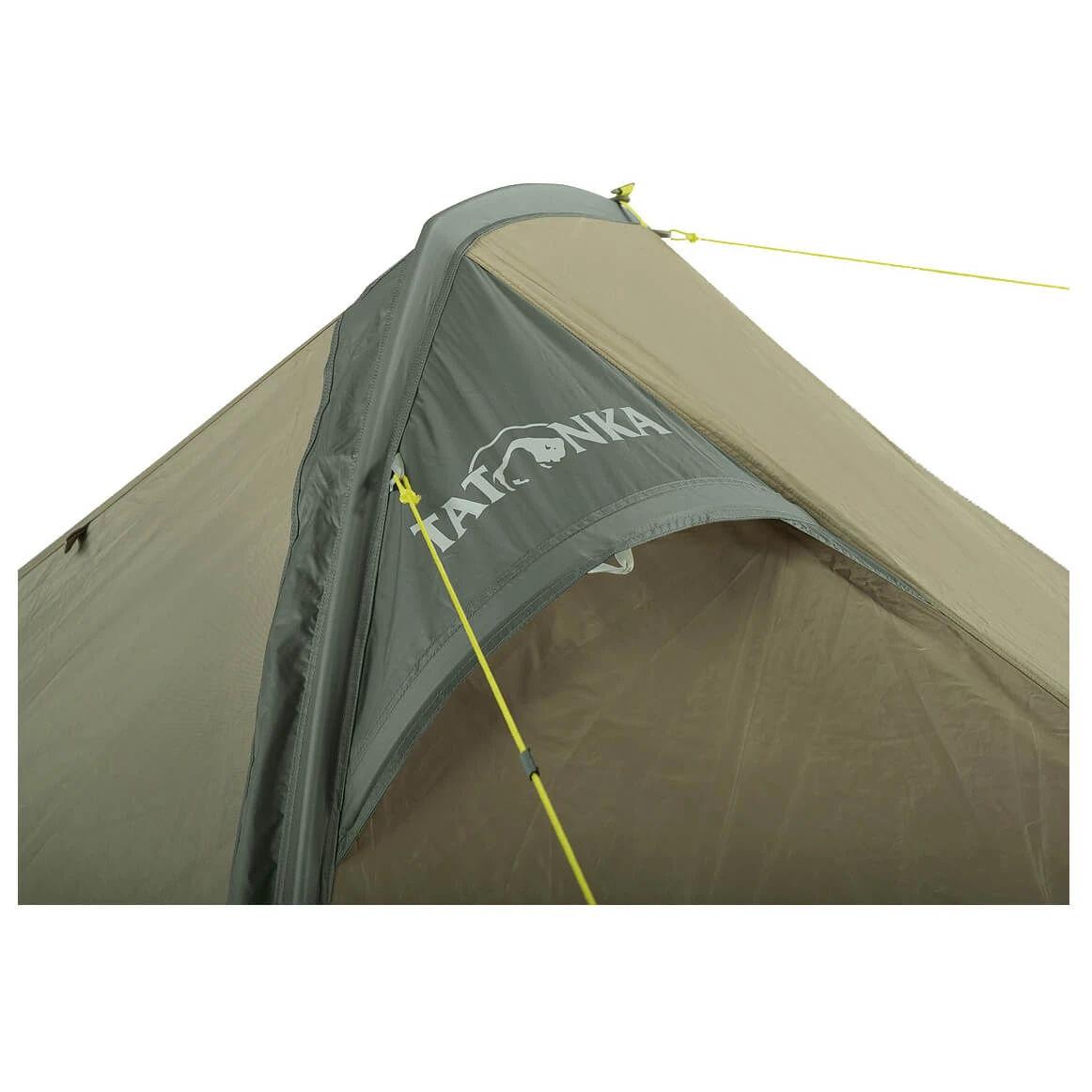 Das Koli 1 Personenzelt von Tatonka ist eine klein packbare und leichte Solotouren-Unterkunft. Dank eines zweiten Gestängebogens können hier auch lange Outdoorer ausgestreckt schlafen. Mit dem leichten und bruchfesten Aluminiumgestänge sowie dem eingehängten Innenzelt ist das Koli schnell und einfach aufgebaut. Verstärkte Eckpunkte mit Gurtbandschlaufen sorgen dabei für Stabilität und Haltbarkeit. Bei Bedarf kann das Innenzelt schnell ausgehängt und somit bei anhaltendem Regenwetter trocken gehalten werden. Das Zelt besitzt eine Apsis mit Seiteneingang, wo sich die Ausrüstung platzsparend verstauen lässt. Das Außenzelt besteht aus Polyester und ist auf seiner Innenseite vierfach PU-beschichtet. Dadurch ist es bis zu einer Wassersäule von 8000 mm wasserdicht. Zudem ist das Material farbecht und weist eine gute UV-Beständigkeit auf. Der Zeltboden aus PU-beschichtetem Nylon weist eine Wassersäule von 10.000 mm auf und lässt von unten kein Wasser durch. Auch die anderen Seiten sind gut vor eindringendem Nass geschützt, denn die Nähte des Koli 1 Personen Zelts sind wasserdicht versiegelt. Das Innenzelt ist aus luftdurchlässigem Nylonmaterial gefertigt und mit einem zusätzlichen Lüfter versehen. Ein kleines aber feines und nützliches Extra im Innenraum ist die Wäscheleine. Auch außen wurde mitgedacht: um das übliche Zeltgestolpere zu vermeiden sind Reflektoren an den Zeltleinen angebracht. Da hat man’s selbst bei schlechtem Wetter fast schon gemütlich: das Koli 1 Personenzelt von Tatonka!